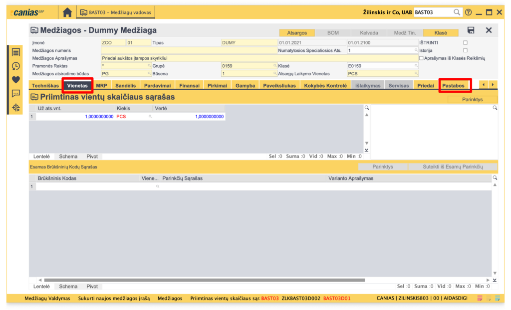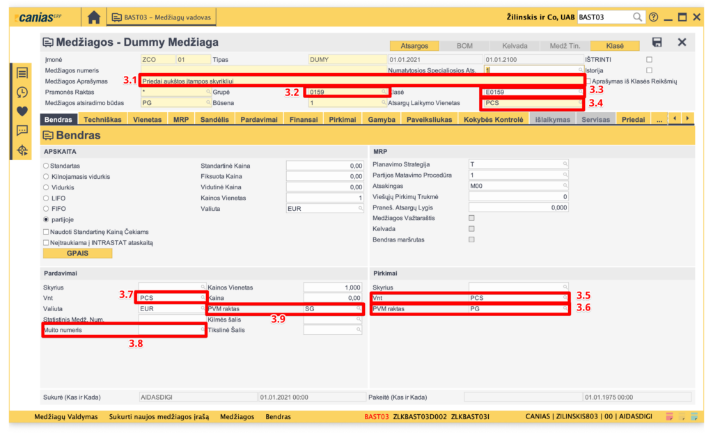 BAST03 prekės kortelių bendrieji paaiškinimai