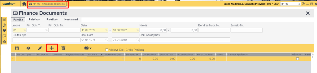 - Norint įvesti kortele gautą mokėjimą (kuomet atsiskaitoma banko kortele, o bankas paskui bendra suma perveda įkritusias lėšas), naudojame FINT02 transakciją kurdami naują dokumentą.
