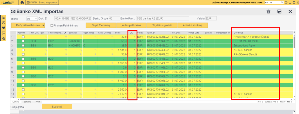 - D/C – debetas/kreditas (debetas = 1, kreditas= 0)