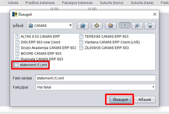 6. Įsikėlus failą, jį išsaugome sistemoje:
