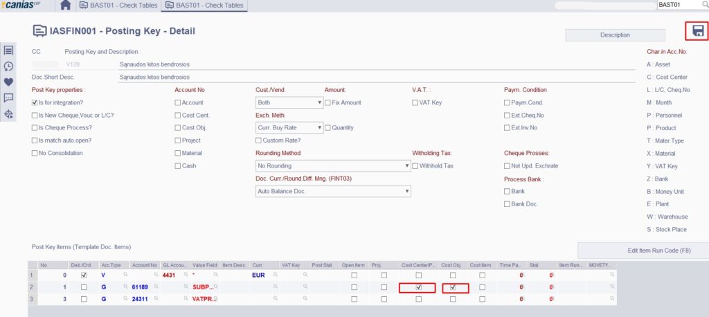 Norint priskirti privalomus kaštų centrus ir /ar objektus reikia: BAST01 -> FIN -> IASFIN001 ->