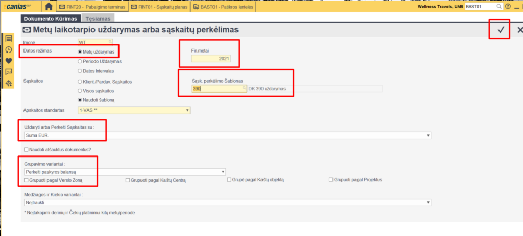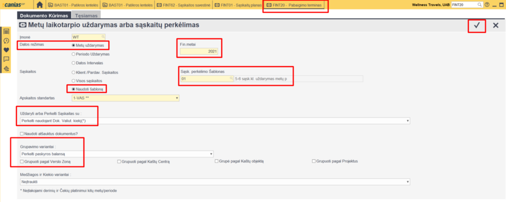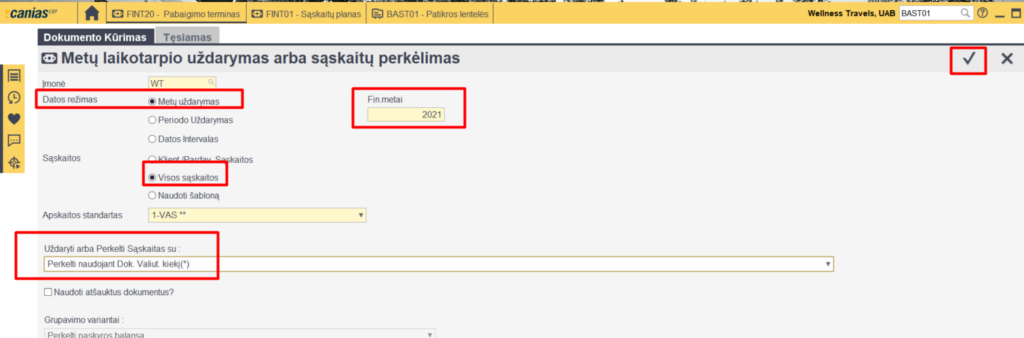- Finansiniai metai – pasirenkame metus kuriuos uždarysime;