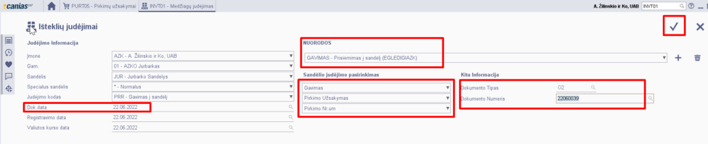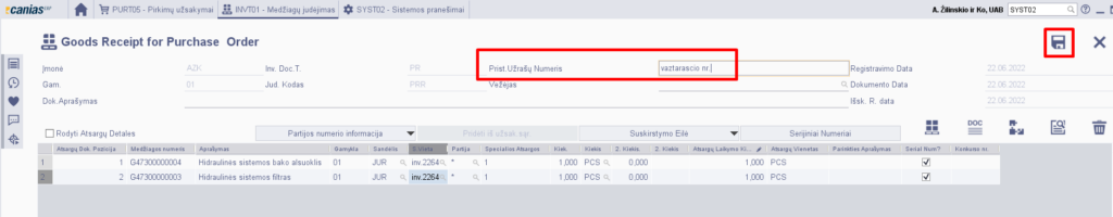 Įrašome važtaraščio numerį ir dokumentą išsaugome.