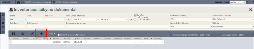 - Sandėlio ataskaita (INVT04) – naudojamas kai inventorizaciją darome pagal sandėlio likučius ir juos koreguosime.