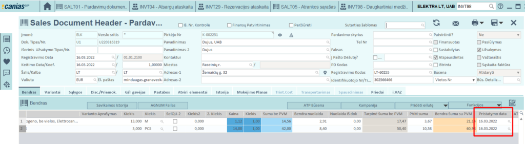 Konvertavus pasiūlymą į užsakymą, jei viskas tvarkoje ir norime kad prekės būtų rezervuotos automatiškai, tiesiog tą užsakymą išsaugome (nepridėdami sandėlio vietų, nes sistema jas parinks automatiškai) ir prekės yra rezervuojamos. Taip pat nepamirštame atkreipti dėmesį į pristatymo datas, pagal kurias sandėlikas atkraus prekes.