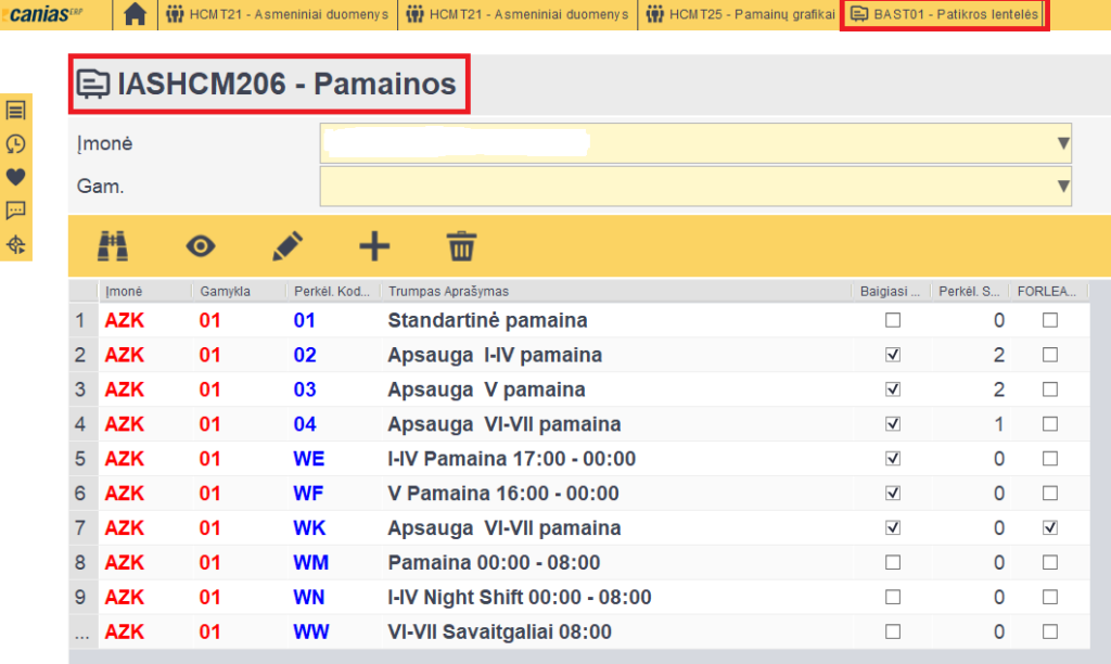 3. BAST01 -> IASHCMT206 susivedame pamainas, jei reikia papildomų arba esant poreikiui koreguojama esamas