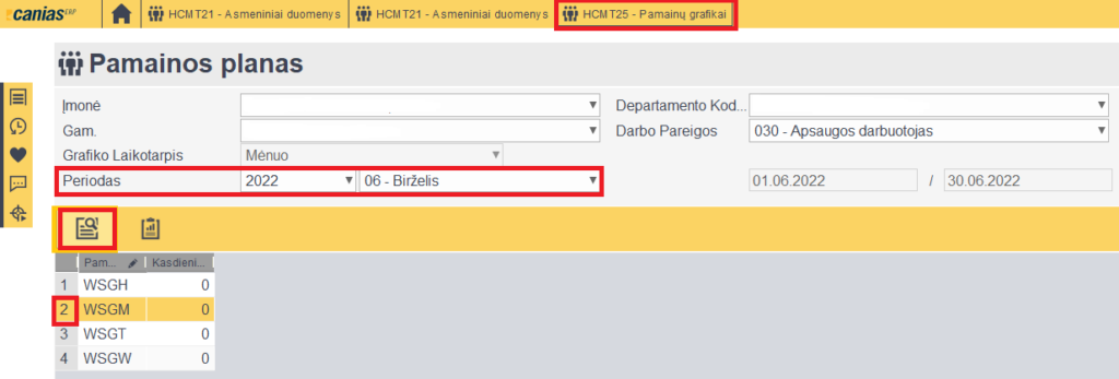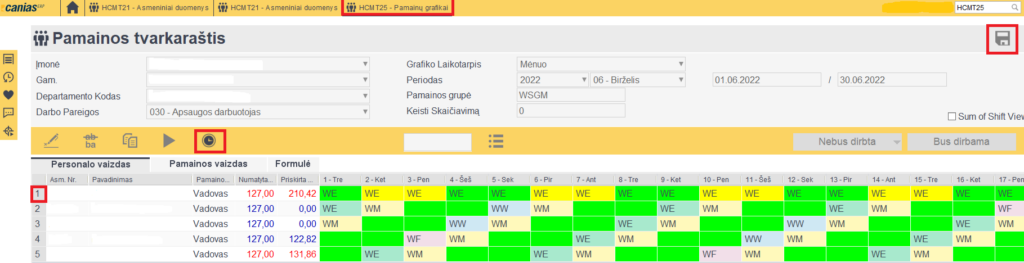 2. HCMT25 priskiriame darbuotojui grafiką
