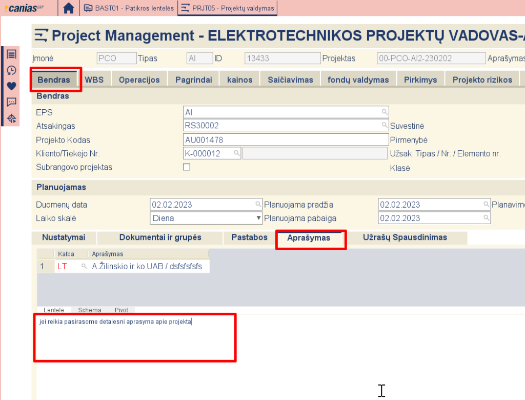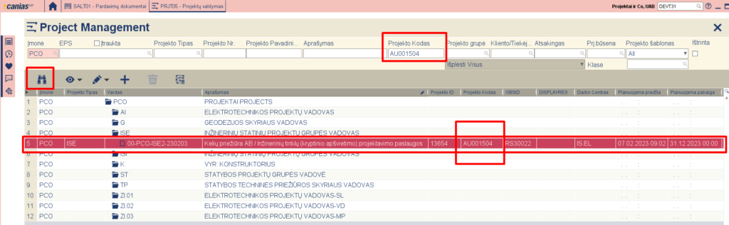 - PRJT05 pagal projekto nr. susirandame norimą projektą.
