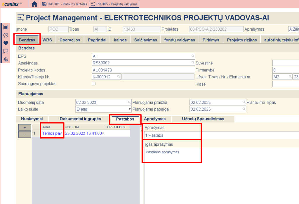 - Pastabos – įsirašome su projektu susijusias pastabas: